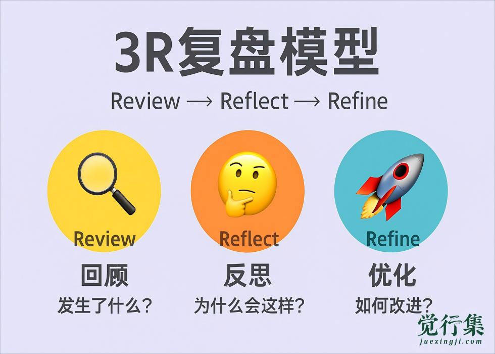 复盘不该只是“回顾过去”,而是要真正帮助我们发现规律、优化行动。3R复盘法模型,通过Review(回顾)、Reflect(反思)、Refine(优化)三个步骤,让经验转化为可持续成长动力。在【觉行集】,我们发现它特别适合职场人、学习者和想自我提升的人群。本文将为你详细解析这套简洁高效的成长模型。